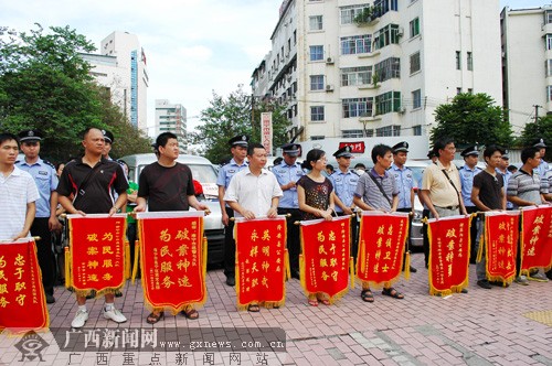 車主送錦旗向警方表示感謝。 廣西新聞網(wǎng)記者 潘曉明 攝