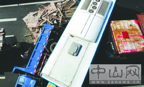 事發(fā)五桂山往三鄉(xiāng)立交橋下,五車連環(huán)撞致交通大堵塞