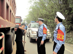 交警開展泥頭車專項(xiàng)整治行動(dòng)。