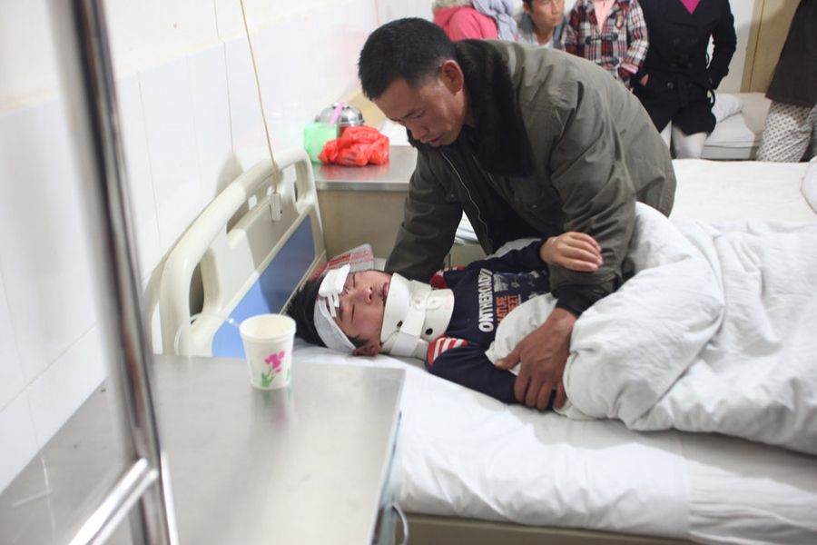 昨晚,記者在文山州醫(yī)院了解到,此起交通事故中的受傷者,除16歲的小林和15歲的小富在重癥監(jiān)護室接受搶救外,其余傷者均被分住于相關(guān)科室接受救治。據(jù)當(dāng)班醫(yī)護人員介紹,小林及小富因為傷勢較重,目前均不排除有生命危險,其余傷者的生命體征均較平穩(wěn)。