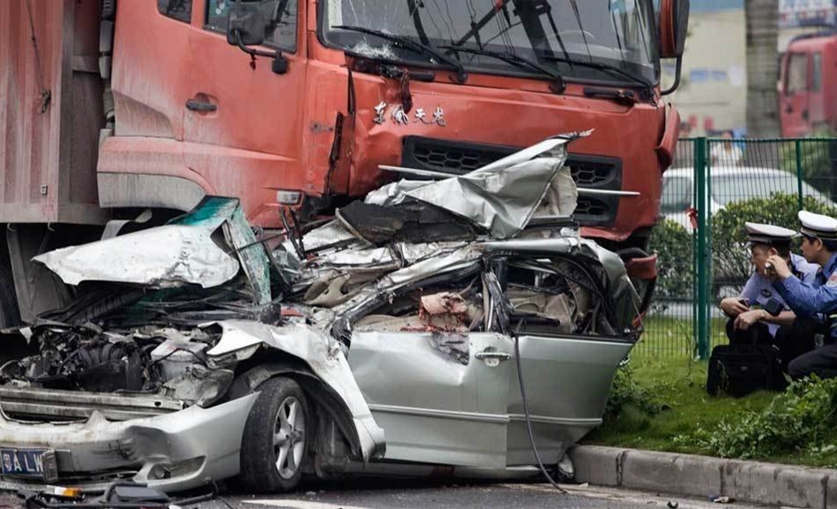 據(jù)周邊居民稱,昨日上午聽到一連串相撞的聲音,跑到路上查看才知道出了大車禍。車禍現(xiàn)場可謂慘烈:紅綠燈前不到100米的路段,11輛車接連相撞,其中包括5輛小貨車、4輛大貨車和2輛小轎車,其中最嚴(yán)重的一輛小轎車被完全壓扁。