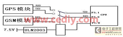 在設(shè)計中使用了Trimble公司的GPS模塊用于小車定位,使用了兩個西門子公司的GSM模塊用于小車和PC機(jī)的無線數(shù)據(jù)傳輸,通過按鍵輸入完成小車部分的設(shè)置,用液晶顯示當(dāng)前的信息,而在PC機(jī)上用串口和GSM模塊通信,再由基于VB平臺所編寫的電子地圖上顯示出來。