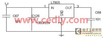 本系統(tǒng)的電源為7.5V,而單片機(jī)的工作電壓為5V,LM7805是5V支流穩(wěn)壓電源芯片片。