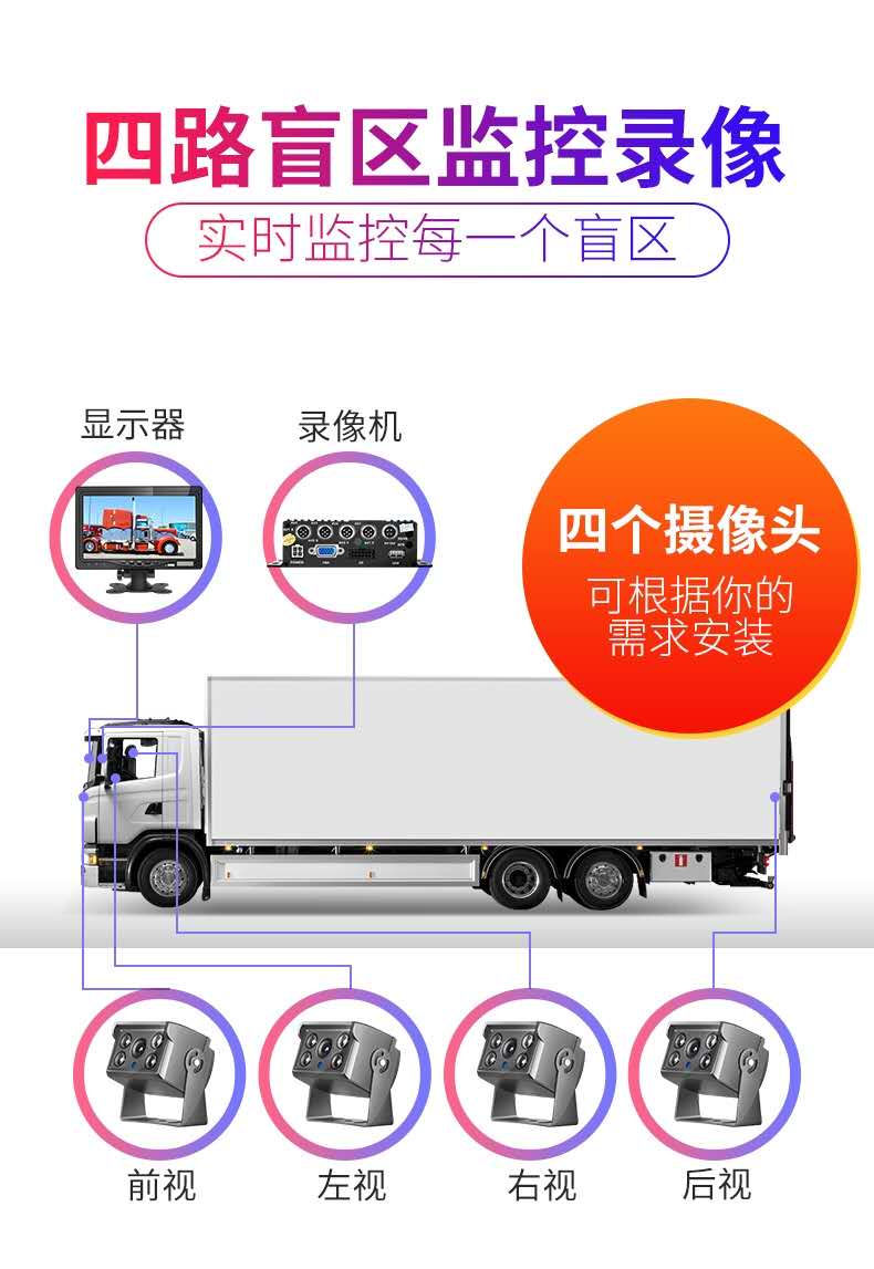 盲區(qū)就是殺手,四路盲區(qū)監(jiān)控錄像,實時監(jiān)控每一個盲區(qū),掃清盲區(qū);