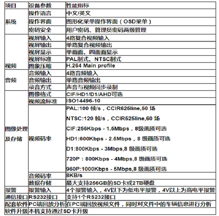 表2: MDVR基本電氣參數(shù)列表