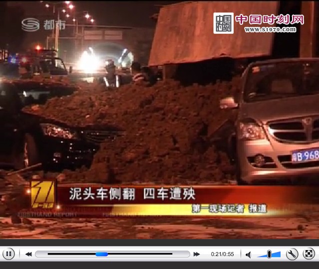 泥頭車超速側(cè)翻 四車遭殃 城市版生死時速