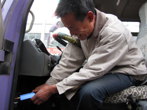 司機(jī)展示衛(wèi)通達(dá)GPS定位系統(tǒng)