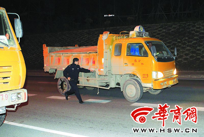 在雁南路與南三環(huán)十字路口,一輛車牌號為陜A07391的渣土車朝東駛來,交警示意其停車接受檢查。不料,這輛渣土車絲毫沒有停車的意思,反而欲加油逃離。“停車!快停車!”特勤大隊兩位負(fù)責(zé)人趕緊沖上去攔停,特勤大隊大隊長馬岳鋒情急之下,一把抓住渣土車上的繩子,追著一路奔跑。渣土車駛出十余米后,終于被迫停在路邊,接受檢查。“這輛車上安裝的GPS根本就沒有打開?!苯痪f,這意味著,無法通過定位系統(tǒng)查看到這輛車的行駛線路。